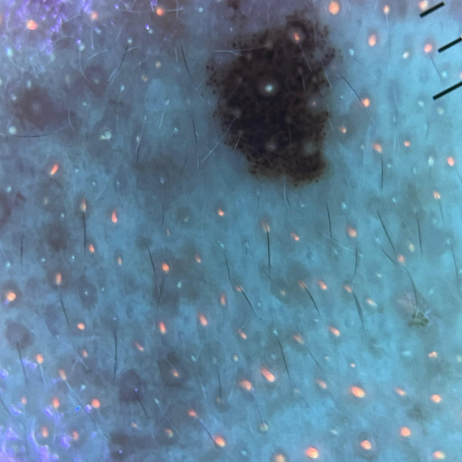 - Initial Scan: Start with a lower magnification (if adjustable) or wider field of view for an overall assessment of the lesion's symmetry and borders.
